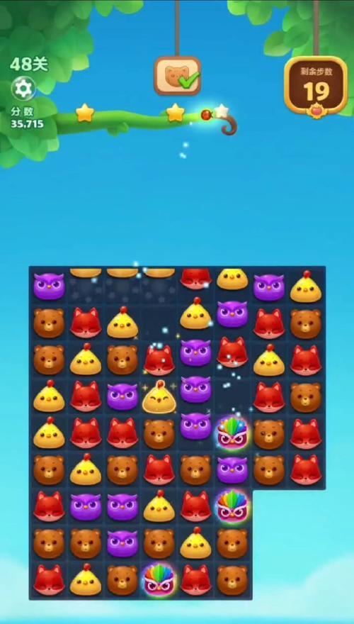 在这个关卡中,玩家需要先解开神秘之岛上的方块封印,然后迅速清除障碍物,尽可能多地产生特殊方块来提高得分。